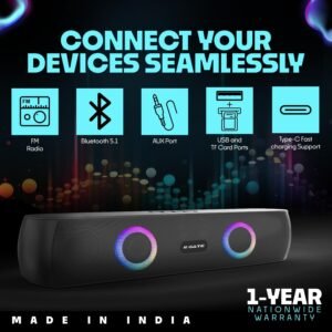 - EZLink- Speaker streams all your music wirelessly with its multiple connectivity (Bluetooth 5.0, USB, AUX, TF Card, FM).