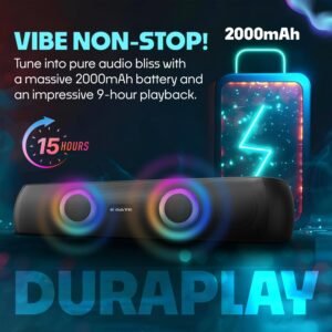 - Duraplay : Upto 15 Hours* Playback with Powerful 2000 mAH battery lets you enjoy full day of enthrallaing music. (*at 50% volume, LED off).