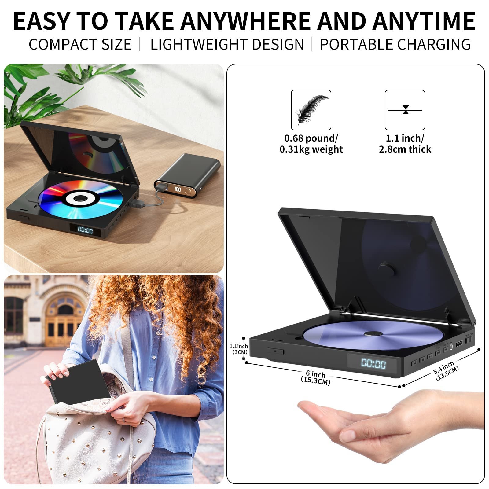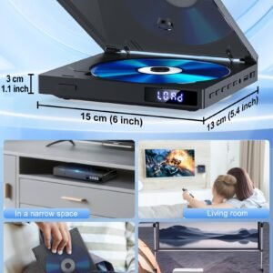 - [COMPACT SPACE-SAVING DESIGN]: Unlike bulky traditional DVD players, this small DVD player is perfect for small spaces and easy to carry. The portable DVD player seamlessly combines modern design with practical functionality, making it an ideal choice for both home and personal use!