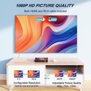- [HDMI AND RCA PORTS]: This home DVD player can be connected to modern TVs via the HDMI port or to older TVs via the RCA port, providing high-definition video and audio output. This DVD player for smart TV can be easily connected to your TV or home theatre system, delivering a cinema-quality viewing experience.
