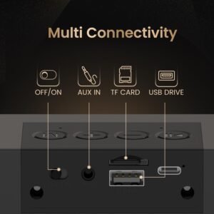 - Play It Your Way : Choose your music source with this portable bluetooth speaker. This versatile wireless soundbar lets you choose your preferred connection: Bluetooth, AUX, TF card, USB flash drive