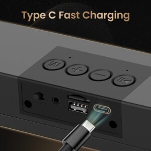 - 5 Hours of Non-Stop Entertainment:: Keep the party going with this wireless soundbar. The convenient Type-C charging port allows for quick recharges, ensuring uninterrupted music, podcasts, or movies on the go.
