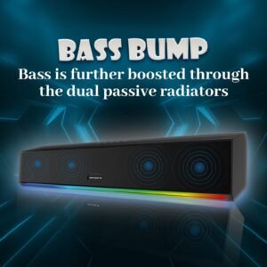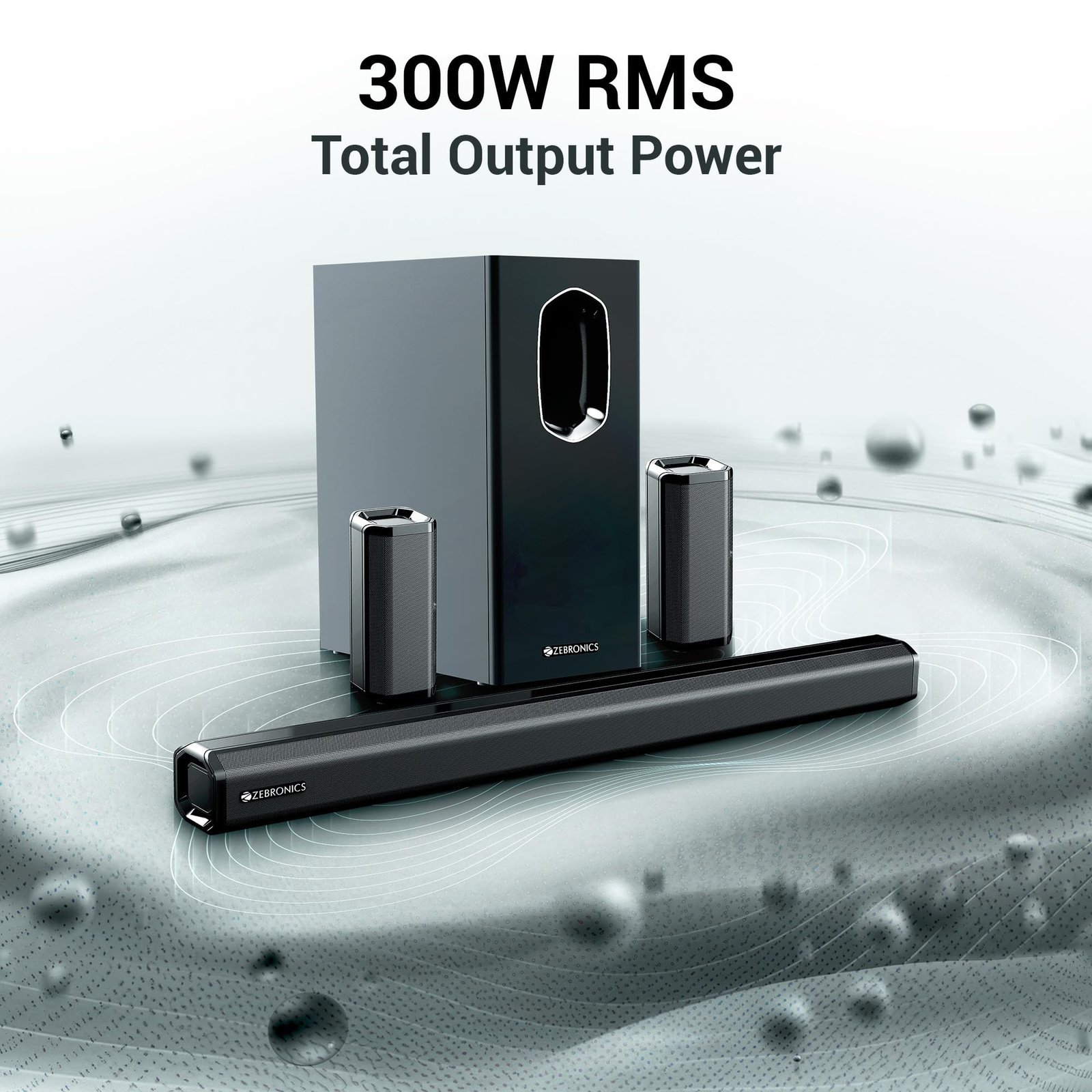 - Dynamic Output: Introducing the Zeb-Jukebar 7600, an audio companion featuring a soundbar that delivers 110W with a subwoofer that delivers 100W and dual rear satellites each producing 45W, delivering a formidable total power output of 300W