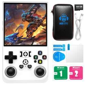 2025 New Upgrade R36MAX Retro Handheld Game Console with 64G Built-in 18000+ Classic Games, Portable Hand Held Open Source Linux System 4.0-in 4k HD IPS Screen Video Player (White-MAX 64GB)