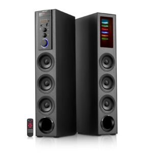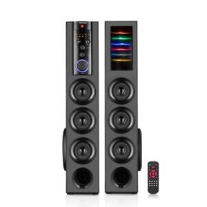 Details: Experience the perfect sound with Vemax Curve Bluetooth Multimedia Tower Speaker System. This beautiful floor standing tower speaker with two 5.25 inch woofers, delivers astonishing base and produces crisp and clear sound. Get the grand theatre feel at home by getting this mega Bluetooth Tower Speaker System from the house of Vemax.