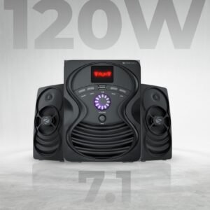 Details: Experience immersive sound Zebronics Omega 7.1 Speaker with BT v5.0, USB, and AUX connectivity options of this powerful 7.1 channel speaker system. Featuring a 10.16 cm subwoofer driver, it delivers deep, rich bass that elevates your audio experience. Tune in to your favorite FM radio stations and easily control the volume and bass levels with the included remote. The LED display adds a touch of style to this exceptional speaker system, making it perfect for any setting.